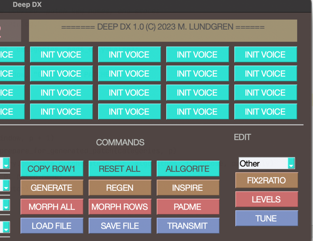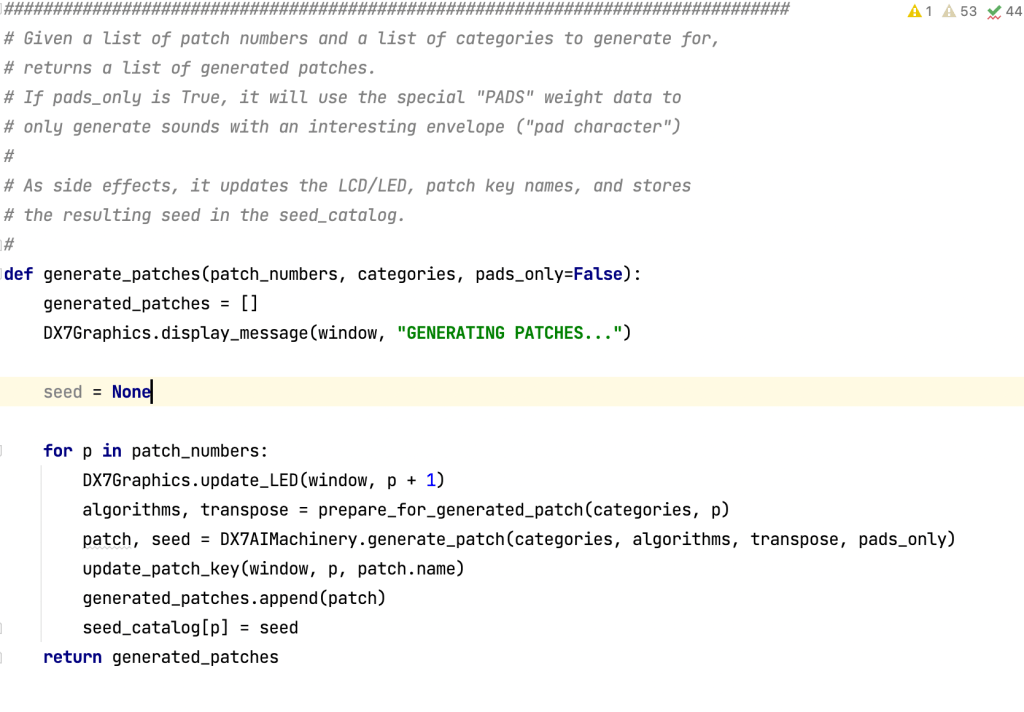 Names for the patches are randomized (from a dictionary that hopefully contains no nasty words). In case you find the names weird or not really descriptive, now you know why! Perhaps “DX7 Patch to Descriptive Name” could be a future AI model to add to the backlog…