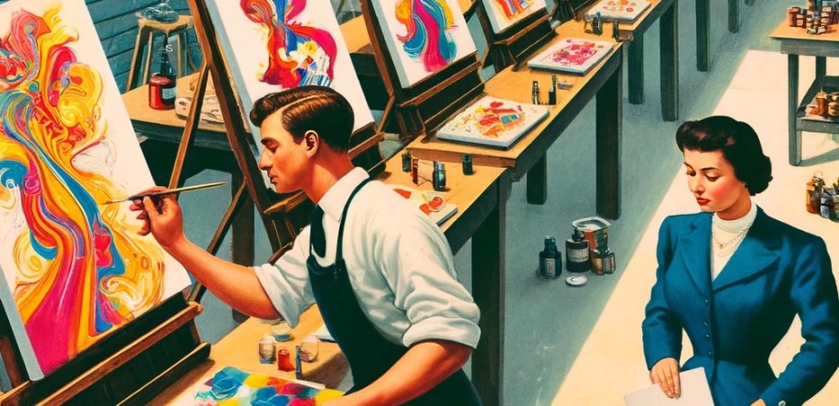 Discriminator waiting for the Generator to finish before judging the resulting artwork