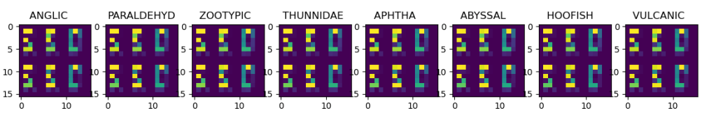 An interesting thing I noted in my experiments was the realization that sometimes less is more. By this I mean that adding layers or dimensions to the network didn’t have the effect of the network being able to learn faster or produce more intricate patches. Indeed, sometimes the opposite seemed to be the case. Also, feature map size and stride were parameters I tinkered quite a bit with during my experiments. For the discriminator I eventually settled on a feature map size of 2 by 2 for all layers expect the first one (4×4), and a stride of 2 for all layers expect the final fully connected one of course. For the generator, three layers of 2×2 seemed to do the trick, in 128 dimensions.