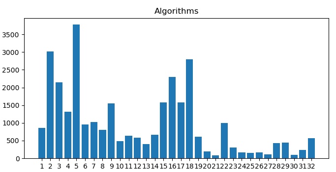 And finally, to answer the question posed in the last part – which is the most commonly used algorithm? The answer can be seen below, and is perhaps not too surprising, at least not to a seasoned DX7 programmer!